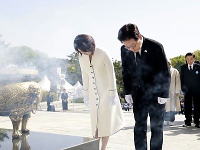 이 대통령, 4·19 정신으로 내란의 밤물리쳐…“66년 전 오늘, 국민 주권의 우렁찬 함성이 오만하고 무도한 권력을 무너뜨려”이 대통령, “독재는 불평등과 빈곤의 틈새 파고 들어”19일 오전 서울 강북구 국립 4·19민주묘지에서 열린 4·19혁명 기념식에서 이재명 대통령과 김혜경 여사가 헌화 후 묵념하고 있다. (사진=연합뉴스)(뉴스9=이호철기자)이재명 대…