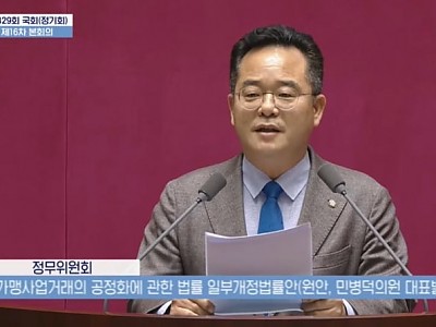 가맹점사업자단체 등록제 도입 및 등록 가맹점사업자단체와의 협의 의무화 가맹점사업자에만 적용되던 보호장치들을 가맹지역본부로 확대 적용 한국편의점네트워크,점주가 살아야 본사도 산다더불어민주당 민병덕 의원이 대표발의한 가맹사업거래의 공정화에 관한 법률(이하 ‘가맹사업법’) 개정안이 11일 국회 본회의를 통과했다.가맹사업범 개정안 제안 설명을 하고 있는 민병덕 의…