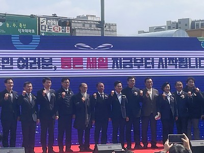 김동연, “통큰세일이 경기도민의 일상과 민생에 활기 넣어주길”2026년 상반기 경기 살리기 통큰세일 수원시 남문시장 일대에서 개막식 개최경기지역화폐를 사용하면 최대 20% 자동 페이백5백여개 상권, 8만여개 점포가 참여해 소비자의 편의 강화전통시장과 골목상권을 살리기 위한 ‘2026년 상반기 경기 살리기 통큰세일’이 20일 수원 남문시장 일대에서 개막했다.…