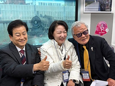 추미애후보, 민주진영 역대 통일부 장관과 함께 DMZ 평화이음 열차 탑승평화 정착을 위한 결단과 의지가 필요성 강조코레일,‘DMZ 평화이음 열차’ 운행 재개…월 2회 운행추미애 더불어민주당 경기도지사 후보는 10일 오전 ‘DMZ 평화이음 열차 운행 재개’에 맞춰 정동영 통일부장관(왼쪽)과 명계남 황해도지사(오른쪽) 등 주요 관계지들과 함께 열차에 탑승했다.…