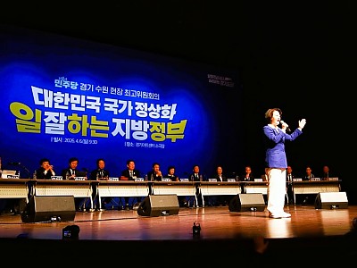 더불어민주당 경기 수원 현장 최고위원회의 참석“위기 돌파”, “행정 혁신”, “대통령의 강력한 우군”필요 강조더불어민주당 경기도지사 추미애 후보는 “이번 지방선거는 중요함과 이재명 국민주권정부 승리를 위해 반드시 승리해야한다”고 강조하면서 “위기 돌파” 도지사가 필요하다고 강조했다. (사진=뉴스9)(뉴스9=이호철기자) 6·3지방선거가 59일 남은6일 오전 …