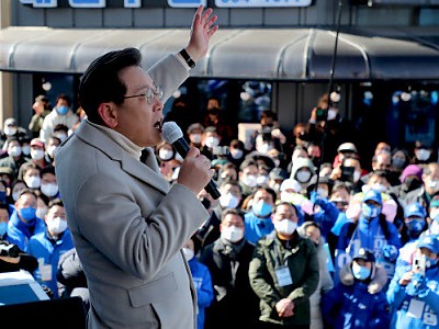더불어민주당 이재명 대선 후보가 23일 오후 충남 당진 어시장에서 열린 유세에서 연설하고 있다. 공동취재사진 ‘IMF 극복’ 김대중 대통령 칭송하며 ‘위기에 유능한 대통령’ 필요성 강조 노무현 대통령 비극적 서거 거론하며 윤석열 ‘문재인 정권 적폐수사’ 비판 ‘민주당 이탈층’ 마음 되돌리기 집중. 20대 대선이 2주 앞으로 다가온 가운데, 이재명 더불어민주…