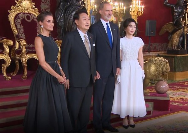 윤석열 대통령과 김건희 여사는 28일(현지시각) 오후 8시30분쯤 국왕 내외가 스페인 마드리드 왕궁에서 주최한 갈라 만찬에 참석했다.