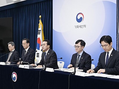 고유가 부담 완화에 10.1조 투입…K-패스 환급률 최대 30%p 확대농수산물 할인 등 고물가 부담 경감…산업 피해 최소화·공급망 안정추가 국채발행 없이 초과세수 활용…골든타임 놓치지 않기 위해 속도정부가 중동 정세 장기화에 따른 고유가 부담 완화를 위해 총 26조 2000억 원 규모의 추가경정예산안(추경)을 편성했다. 박홍근(가운데)기획예산처 장관이 27…