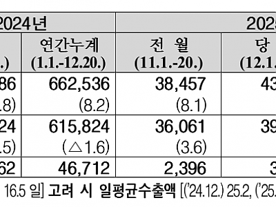관세청, 2025년 12월 1일 ~ 12월 20일 수출입 현황(잠정치) 발표
