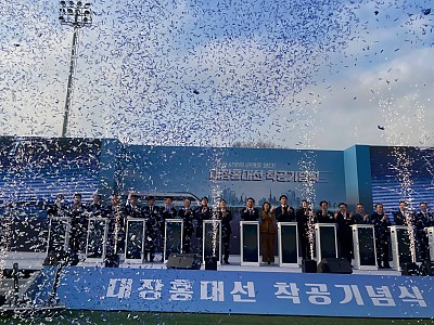 대장홍대선 첫 삽, 서북권의 교통지도가 바뀐다부천에서 서울 서부도심까지 20분…대장~홍대선과 지하철 5·9호선, 공항철도와 연계 수도권 발전축으로 성장혁신15일 부천시 오정대공원 축구장에서 열린 경기서부권 광역철도 대장홍대선 착공식이 열렸다. (사진=뉴스9)(뉴스9=이호철기자) 15일 부천-고양-서울 서부도심을 잇는 대장~홍대 광역철도 대장홍대선 착공 기념…