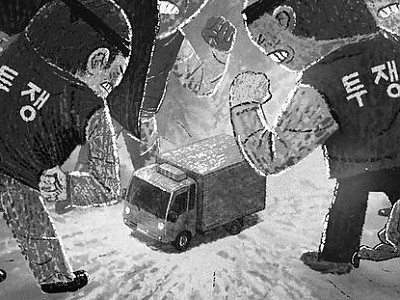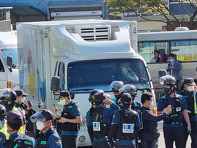 민노총, 이번엔 박치기로 화물차 유리창 박살… 일당 기사들은 웁니다.