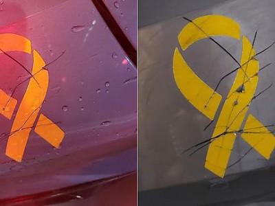 20일 온라인 커뮤니티 보배드림에 올라온 테러당한 세월호 노란리본 스티커 붙인 차량. 왼쪽이 첫날 사진이고, 오른쪽이 이튿날 사진이다. 추석 연휴 동안 아파트에 세워둔 차가 2일 연속 칼자국 테러를 당했다는 사연이 전해졌다. 차 주인은 차량 훼손을 발견하자마자 경찰에 신고했지만, 이튿날에는 더 심한 훼손이 남겨져 있었다. 20일 온라인 커뮤니티 보배드림에는…
