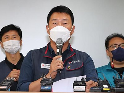 서울 도심에서 불법 집회를 주도한 혐의를 받는 양경수 전국민주노동조합총연맹(민주노총) 위원장이 지난 11일 오전 서울 중구 정동 민주노총에서 구속 전 피의자 심문(영장실질심사) 불출석 등에 대한 입장을 밝히고 있다. 서울 도심에서 방역지침을 위반하고 대규모 집회를 잇달아 주도한 혐의로 입건된 양경수 전국민주노동조합총연맹(민주노총) 위원장에 대한 구속영장이 …