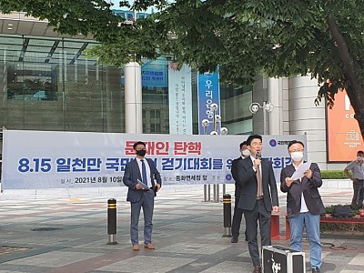 10일 서울 종로구 동화면세점 앞에서 국민혁명당 관계자들이 기자회견을 하고 있다. 국민혁명당, 10일 서울 종로구 동화면세점 앞에서 기자회견 “14일부터 16일까지 1000만 국민 1인 걷기 운동 개최” 경찰, ‘1인 시위 빙자한 불법집회’고 보고 차단 예정. 전광훈 사랑제일교회 담임목사가 이끄는 국민혁명당 측은 올해 광복절에도 서울 도심 대규모 시위를 강…
