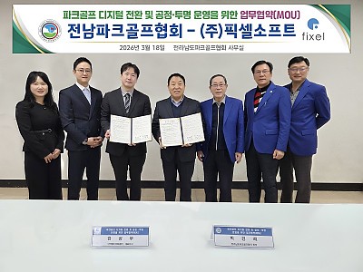 전남파크골프협회-(주)픽셀소프트웨어 MOU 체결국내 유일 파크골프 통합예약 플랫폼 선제적 도입지자체•시설공단 위탁운영 “선착순 접수” 한계 극복디지털 약자 배려·시니어 친화적 디지털 생태계를 위한공정 이용 질서 구축전국 지자체 최초 파크골프 디지털 대전환 선언한 전남파크골프협회는 (주)픽셀소프트웨어와 MOU 체결하고 파크골프 통합예약 플랫폼 선제적 도입했다…