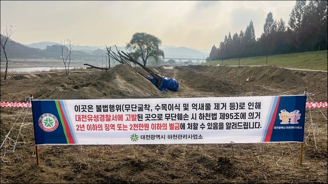 지난해 11월 대전 유성구파크골프협회가 대전 갑천 용신교 상류 인근 하천부지에서 멸종위기 야생생물의 서식지를 훼손하며 불법으로