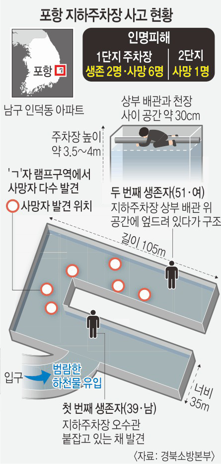 박씨는 당시 두 번째로 차를 몰고 주차장을 빠져나왔다. 그는 비가 퍼붓기 전날 지하주차장에 주차해도 된다는 말을 들었다. 기록적인 폭우가 아파트를 덮칠 줄은 아무도 몰랐다.