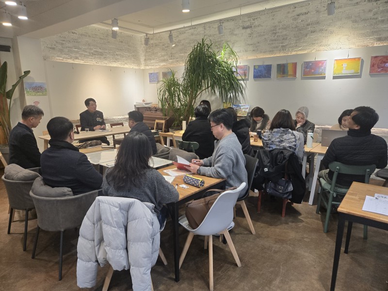 안산미래교육협의기구 정책연구회 총회 간담회 참석한 성기선 예비후보가 대화를 나누고 있다. (사진=경기교육미래포럼)