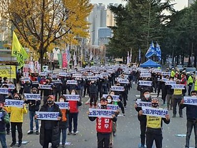 "정부 방역 지침보다 강한 내부 지침 적용"…김 총리에 토론도 제안. 전국민주노동조합총연맹(민주노총)이 7일 예정대로 이달 총파업을 강행할 방침을 재확인했다. 민주노총은 이날 서울 중구 정동 민주노총에서 기자회견을 열어 "더 이상 설명과 경험이 필요 없는 이 공고한 착취의 시스템을 깨기 위한 첫걸음으로 10월 20일 총파업에 나선다"며 "이제 준비는 끝났다…