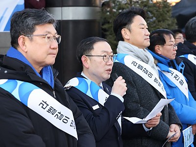 790만 소상공인의 생존권을 대기업에 헌납불공정 행위를 규제하고 독과점을 방지가 정부와 여당의 역할골목상권 숨통 끊낀다…“강행시 헌법소원 청구할 것” 강력 경고김성민 한국중소상인자영업자총연합회 공동회장(왼쪽 네 번째)이 6일 서울 여의도 국회의사당 앞에서 기자회견을 갖고 대형마트 새벽배송 허용을 추진하는 정부와 여당을 규탄하고 있다. (사진=한국중소자영업자…