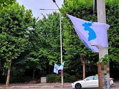 광복절 태극기 대신 한반도기 '펄럭'…"北 방문한 줄" 시민들 당황.