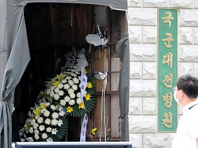 남성 상사에게 강제추행을 당했다고 신고한 해군 여군 중사가 12일 사망한 채 발견됐다. 사진은 13일 근조화환을 운반하는 차량이 빈소가 마련된 대전 유성구 국군대전병원 정문으로 진입하는 모습. 군이 성추행 피해 신고 후 사망한 해군 중사를 순직 처리하기로 결정했다. 가해 혐의를 받는 상관은 구속됐다. 해군은 14일 “전날 보통전공사상심사(사망) 위원회를 열…