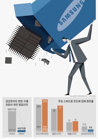 삼성전자가 자동차 전장과 스마트폰용 반도체 사업에서 부진을 겪고 있다. 2017년 9조원을 들여 인수한 자동차 전장·부품 자회사 하만은 인수 당시보다 실적이 쪼그라들었고, 올해 스마트폰용 반도체 칩셋 시장에선 퀄컴·애플 같은 경쟁 업체들과 달리 ‘나 홀로’ 역성장할 것이라는 전망이 나오고 있다. 미래 성장동력으로 여겨온 자동차 전장과 모바일 칩셋에도 그늘이…