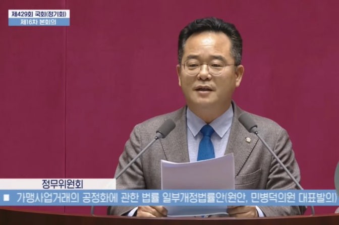 더불어민주당 민병덕 의원이 대표발의한 가맹사업거래의 공정화에 관한 법률(이하 ‘가맹사업법’) 개정안이 11일 국회 본회의를 통과했다.