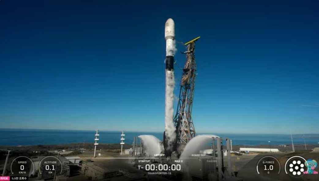 경기도는 29일(한국시간) 03시44분 미국 캘리포니아 반덴버그 우주군기지에서 한국 최초의 지방정부 주도 기후위성 ‘경기샛’ 발사했다. (사진=경기도청 유튜브 라이브)