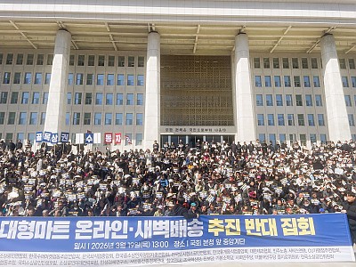 전통시장·골목상권 무너지고 노동자는 쓰러진다대형마트 규제는 단순한 규제가 아닌 사회적 약속…민주당 을지로위원회 온라인·새벽 배송 추진 반대 밝혀…대형마트의온라인·새벽배송 허용 철회를 촉구하는 전국의 766만 전통시장과 골목상권소상공인들의 대규모 반대 집회가 19일 오후 국회본청 앞중앙계단에서 진행됐다. (사진=뉴스9)(뉴스9=이호철기자) 쿠팡 견제와 대형마…