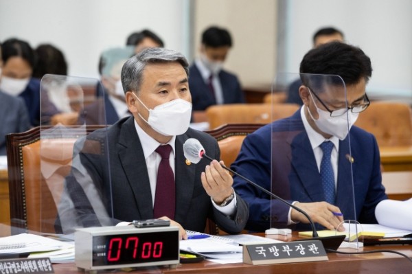 이종섭 국방부 장관이 29일 서울 여의도 국회에서 열린 국방위원회 전체회의에서 의원 질의에 답변하고 있다.