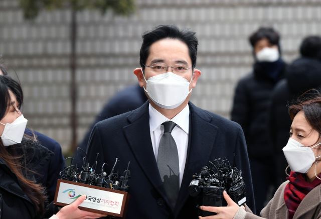 국정농단 사건으로 재판에 넘겨진 이재용 삼성전자 부회장이 지난 1월 18일 서울 서초구 서울고등법원에서 열린 국정농단 사건 파기환송심 선고 공판에 출석하고 있다.