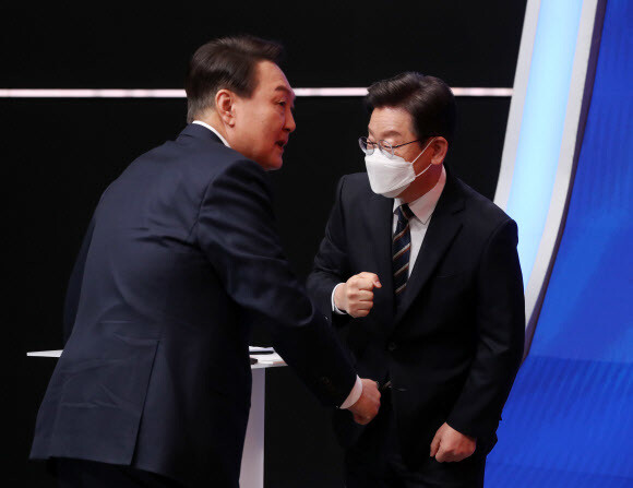 윤 후보는 이에 이 후보를 둘러싼 대장동 개발 특혜 의혹을 꺼내들며 “이 후보가 성남시장, 경기지사 하면서 한 부정부패에 대해 제대로 법을 적용하는 것이야말로 민주주의고, 경제발전의 기초”라고 맞받았다.