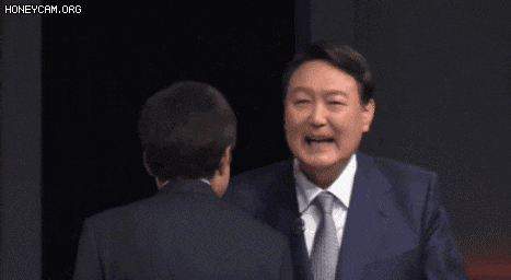 윤석열 전 검찰총장이 홍준표 의원의 어깨를 툭 치는 장면. 국민의힘 대권주자인 윤석열 전 검찰총장이 15일 홍준표 의원과 맞수토론 후에 홍 의원의 어깨를 툭 치며 "그만해라"라고 말하는 듯한 영상이 온라인 커뮤니티를 통해 확산되고 있다. 나이가 여섯 살 많고, 검사 기수로도 9년 선배인 홍 의원을 아랫사람 대하는 듯한 이 같은 태도에 누리꾼들은 "선 넘네"…