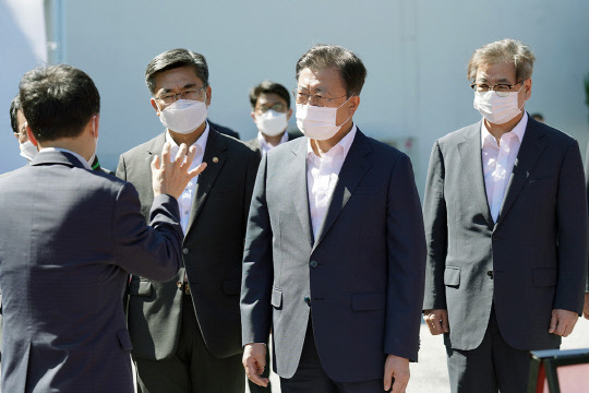 지난 15일 문재인 대통령이 국방과학연구소 미사일전력 발사 시험을 참관하는 모습. 청와대 제공.