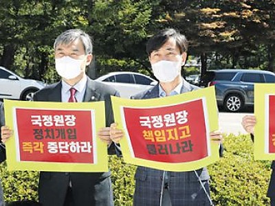 野, 국정원 항의방문 - 국회 정보위원회 소속 국민의힘 하태경(오른쪽에서 둘째)·조태용(왼쪽에서 둘째) 의원과 보좌진이 15일 서울 내곡동 국가정보원 앞에서 “박지원 국정원장은 정치 개입을 중단하라”며 항의 시위를 하고 있다. 고발사주 의혹 증거 훼손 논란. ‘윤석열 검찰의 고발 사주 의혹’을 놓고 여야(與野)가 공방을 벌이는 와중에 박범계 법무장관은 지난…