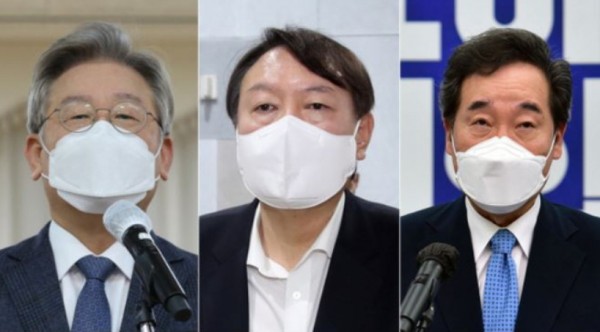 이재명 경기지사, 윤석열 전 검찰총장, 이낙연 전 총리.