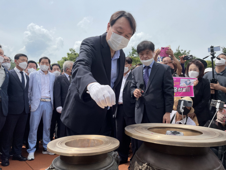 한편 이날 현장에는 윤 전 총장의 지지단체 등 200여명 이상 인파가 대거 운집해 일대에 혼란이 빚어지기도 했다. 박근혜 전 대통령을 지지하는 일명 '태극기 부대'와 윤 전 총장 지지자들 사이 고성이 오가기도 했다.