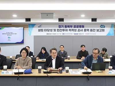 김동연 “양주·남양주서 공공의료에 대한 갈증과 열망 느껴. 사명감 받았다”예타면제 관련 “공공의료는 공공재, 비용·편익으로 볼 수 없어”남양주·양주 혁신형 공공병원 설립 타당성조사 연구용역 중간 점검18일 경기도청 서희홀에서 동북부 공공의료원 설립 타당성조사 중간보고회가 열렸다.. (사진=경기도청)(뉴스9=이호철기자)김동연 경기도지사가 동북부 공공병원의 신…