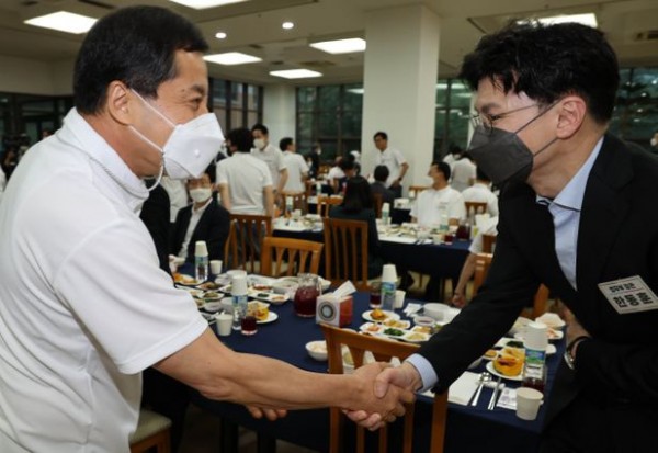 술 대신 오미자 주스 건배… “與연찬회 최고 인기 장관은 한동훈”