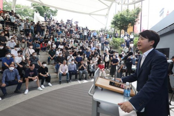 이날 이 대표의 대구 기자회견 장소엔 지지자 100여 명이 모였다. 그는 지역 민심을 의식한 듯, 지지자들을 향해 "대구 김광석거리에서 차 한 잔, 밥 한 끼 드시고 가달라"고 당부하기도 했다.