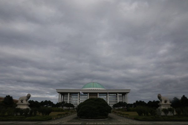 10일 서울 여의도 국회 본청 위 하늘에 먹구름이 드리워져 있다. 윤석열 정부 첫 국정감사가 중반을 향해 흘러가면서 여야의 강대강 대치가 한층 더 심해질 전망이다. 2주차인 이번주(11~14일)에는 이번 국감 최대격전지로 예상되는 감사원 국감 등이 있어 여야 간 격렬한 공방이 예상된다.