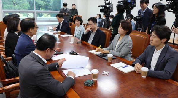 비공개 회의로 전환되기 전 참석한 의원들은 공개발언을 통해 양당 지도부의 결단을 촉구했다.