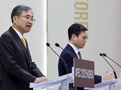 “총 40여개 문항…정상회의 핵심 성과 담길 것”“미중 균형점 찾아 공급망 안정화, 한국에도 부합”“한미 원자력협정 개정, ‘잠재적 핵능력’과 무관”한 미 정상, 관세협상 타결조현(왼쪽) 외교부 장관과 여한구 산업통상자원부 통상교섭본부장이 30일 경북 경주시 2025 아시아태평양경제협력체(APEC) 정상회의 국제미디어센터(IMC)에서 APEC 합동각료회의(…