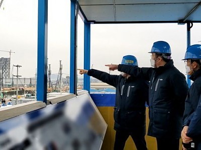 이재용 삼성전자 부회장(오른쪽에서 세 번째)이 지난 1월 4일 임직원들과 함께 경기도 평택 3공장 건설현장을 점검하고 있다.ⓒ삼성전자 문재인 대통령(오른쪽)이 지난 2019년 4월 30일 오후 경기도 화성 삼성전자 화성캠퍼스 부품연구동(DSR)에서 개최된 '시스템 반도체 비전 선포식'에서 이재용 삼성전자 부회장이 지켜보는 가운데 세계 최초로 극자외선(EUV…