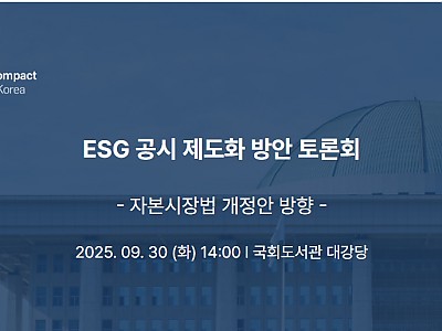 글로벌 ESG 책임자와 한국의 미래ESG 공시 제도화 방안 토론회: 자본시장법 개정안 방향ESG 공시 등 ESG 관련 국내외 동향ESG 공시 제도화를 위한 자본시장법 개정의 구체적 방안(뉴스9=이호철 기자) 제22대 국회ESG포럼(공동운영사무국: 한국사회책임투자포럼, 유엔글로벌콤팩트 한국협회)은 지난 9월 30일(화)오후 2시 국회도서관 대강당에서'ESG …