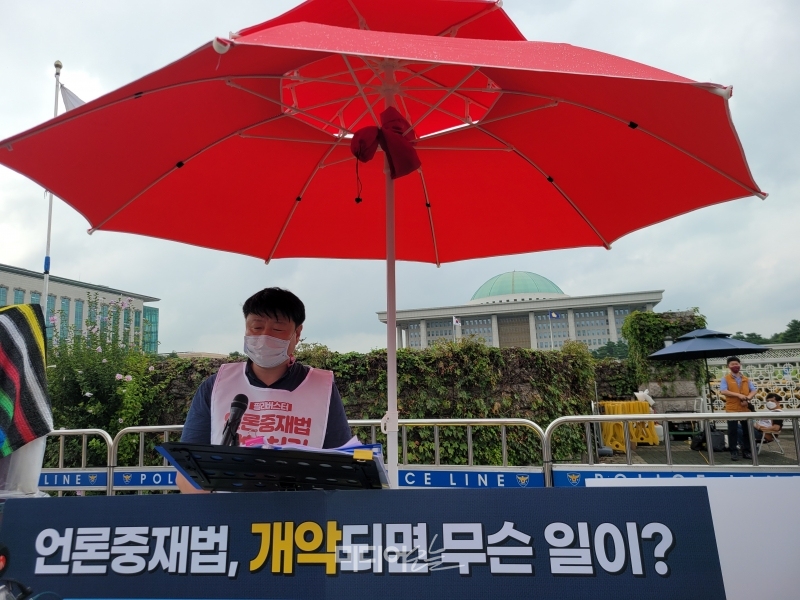 그러면서 “피해를 구제하겠다는 목적 삼아 만드는 개정안이 사회적 합의를 거치지 않으면 정치인들이 자의적으로 적용하면서 자기들이 불편해하는 뉴스를 차단하는 데 법을 악용할 가능성이 매우 높다”며 “바른 소리 하는 언론의 입은 틀어막고 고치려고 하는가”라고 했다.
