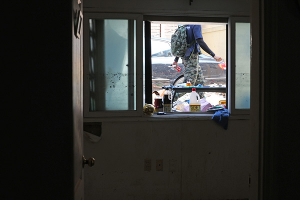 12일 오후 서울 관악구 신림동 일대 반지하 창문 앞에 폭우로 침수된 물품들이 널브러져 있다.