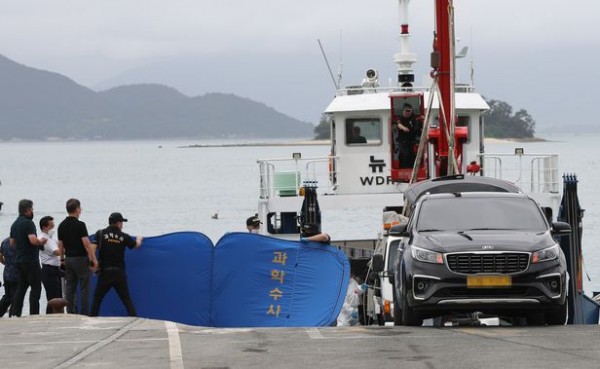 29일 오전 전남 완도군 신지면 송곡선착장 부근에서 경찰이 10m 바닷속에 잠겨있는 조유나(10)양 가족의 차량을 인양한 뒤 조양 가족으로 추정되는 시신을 수습하고 있다. / hbs뉴스광장.