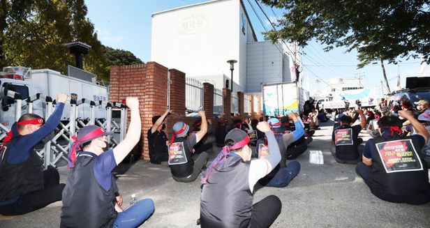 민노총 화물연대는 이날 오후 2시쯤 세종시 금남면 SPC삼립 세종 공장 정문 앞에서 불법 집회를 강행했다. 사회적 거리 두기 3단계인 세종시에서는 49인 이하 집회만 열 수 있지만, 노조원 100여 명은 공장 정문 앞 도로를 점거하고 “노조 파괴 규탄, 부당 해고 철회” “노동 조건 개선”을 요구했다.