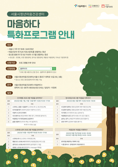 서울시청년마음건강센터, 청년 특화프로그램 연중 운영