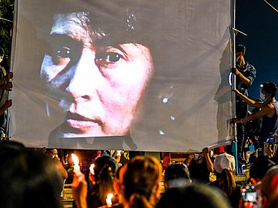 미얀마에서 2월 1일 발생한 군부 쿠데타가 6개월째로 접어든 가운데 사망자와 난민 규모가 갈수록 증가하고 엎친 데 덮친 격으로 코로나19가 급속히 확산하고 있다. 사진은 군부 쿠데타에 저항하는 시민들이 미얀마 민주화의 상징인 아웅산 수치 여사 사진을 크게 걸고 저항하는 장면. 미얀마 국민들이 군부 쿠데타에 저항하고 있지만 지난달부터 코로나19가 급격히 확산…