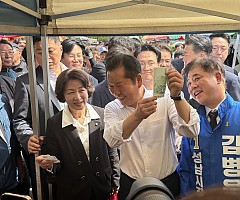 정청래,“대한민국 국가정상화, 일잘하는 지방정부”추미애,“민주주의를 지키기 위해서 민생이 정답”김병욱,“모란전통5일장은 이 대통령의 실용정치의 상징”더불어민주당은 19일 오후 정청래 대표가 영남권과 서울에 이어 이재명 대통령의 정치적 고향인 경기 성남시를 성남시 모란시장을 찾아 추미애 경기도지사 후보 지원했다. (사진=뉴스9)(뉴스9=이호철기자) 6월 지방…